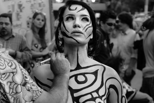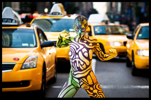 Finalmente uno scatto in avanti! Andy Gobul, artista newyorkese che ama spassionatamente dipingere: oggetti, muri e corpi,ci ha messo un po’ di anni ma alla fine ce l’ha fatta. Performance di strada, a New York, con volontari (fino a mille) nudi e interamente dipinti. Senza distinzione di età, sesso e misure. Obesi come secchi, vecchi come ragazzi, uomini come donne si sono dati appuntamento qualche giorno fa in una strada della Grande Mela e hanno fatto quello che Gobul gli chiede di fare. Sfilare dipinti. E la polizia, a differenze di quello che accadeva fino a qualche anno fa, non è intervenuta.
