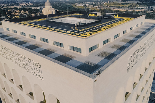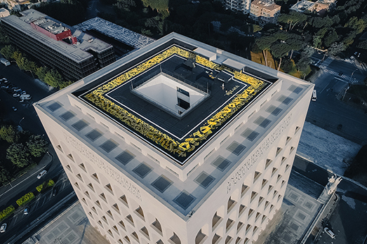 Il mondo della moda ha perso uno dei suoi pilastri, la stilista Carla Fendi. Ma in uno dei suoi giorni più tristi, continua la passione della storica maison per l’arte. Dopo Penone, protagonista a Palazzo della Civiltà Italiana all’Eur è Pokras Lampas, che pochi giorni fa ha completato il suo progetto sul tetto dell’edificio, uno dei più grandi lavori di calligrafia sviluppati in Italia. Con un rullo e 500 litri di vernice, l’artista russa ha creato un enorme labirinto, perfettamente quadrato, composto da diverse forme tipografiche che si estendono per 1.250 metri quadrati. Il “calligraffito” è stato realizzato per F is for… la nuova piattaforma digitale per i millennials ideata da Cristiana Monfardini, Worldwide Communication Director di Fendi, dove condividere e comunicare arte, musica, moda e cultura. (NG)