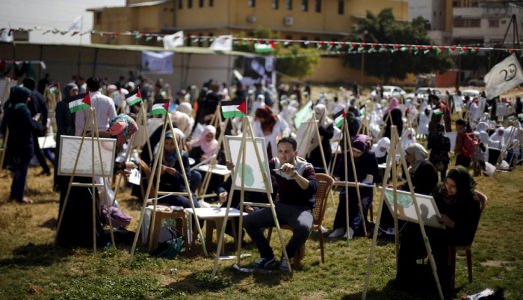 È il giorno dell’annuale commemorazione delle proteste del 1976 contro l’invasione che fece Israele per appropriarsi dei territori arabi in Galilea. E la ricordano anche così, con decine di artisti che lavorano per strada. Dipingendo. Forse non realizzando capolavori e facendo ricorso alla tecnica più semplice, quella che si può fare anche per strada. Ma ci sembra una scena molto bella, molto degna. Soprattutto perché l’arte fa la sua parte. Mettendosi in gioco, anzi in piazza. In maniera spontanea, ma molto efficace. Una vera Street Art! Soprattutto perché non è una delle solite (purtroppo) immagini drammatiche che ci arrivano da Gaza. È invece un’immagine vitale. Un bel quadro che quel territorio martoriato offre, almeno per un giorno, allo sguardo del mondo.
