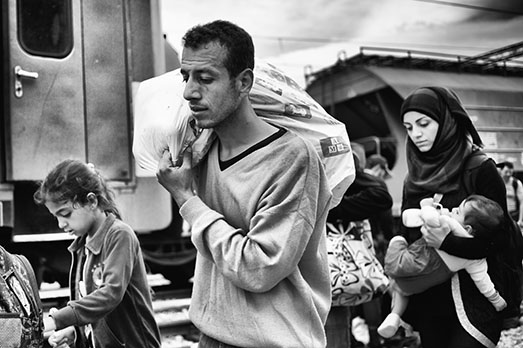 Fino al 14 marzo, la Galleria San Fedele di Milano ospita “Scappare la guerra”, mostra fotografica di Luigi Ottani, a cura di Manuela Gandini. Per l’occasione, vengono presentati al pubblico una serie di scatti che documentano il viaggio di Ottani e Roberta Biagiarelli, autori di questo reportage compiuto nell’estate del 2015 al confine greco-macedone, al fianco di famiglie di profughi siriani, iracheni e afghani. Un viaggio raccontato attraverso lo sguardo empatico dei due autori, Ottani, fotografo, e Biagiarelli, attrice, autrice, documentarista e progettista teatrale, che porta l’esperienza della guerra nel cuore d’Europa. (NG)
