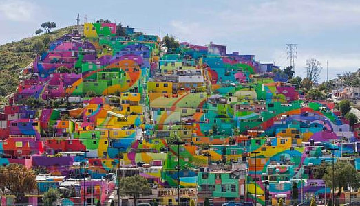 A Palmitas, cittadina del Messico, diventato uno dei Paesi più violenti del mondo a causa del traffico di droga che si è concentrato qui da quando la Columbia gli ha dichiarato guerra, la storia legata alla Street Art è particolarmente interessante. Il governo locale ha chiamato un gruppo di street artist, la German Crew, mettendogli a disposizione 209 case di uno dei quartieri più depressi di Palmitas. Obiettivo: contrastare la violenza tra i giovani. La German Crew ha quindi lavorato su una superficie di 20mila metri quadrati creando un’opera davvero forte, che vedete in foto, chiamata El Macro Mural Barrio de Palmitas. Questo, tanto per smentire che l’arte non serve a niente e che, al massimo, è un trastullo per sfaccendati.