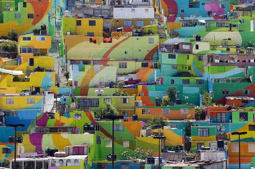 A Palmitas, cittadina del Messico, diventato uno dei Paesi più violenti del mondo a causa del traffico di droga che si è concentrato qui da quando la Columbia gli ha dichiarato guerra, la storia legata alla Street Art è particolarmente interessante. Il governo locale ha chiamato un gruppo di street artist, la German Crew, mettendogli a disposizione 209 case di uno dei quartieri più depressi di Palmitas. Obiettivo: contrastare la violenza tra i giovani. La German Crew ha quindi lavorato su una superficie di 20mila metri quadrati creando un’opera davvero forte, che vedete in foto, chiamata El Macro Mural Barrio de Palmitas. Questo, tanto per smentire che l’arte non serve a niente e che, al massimo, è un trastullo per sfaccendati.