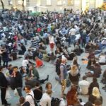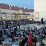Sofia Gocinski è una dei 78 artisti che oggi inaugurano la mostra “Destination Vienna” alla Kunsthalle della capitale austriaca. Della mostra, le cui foto le potete vedere sulla pagina Facebook di Exibart, vi parleremo meglio. Ma intanto, mentre scorreva in video la sua performance e altri artisti presentavano le loro opere, fuori nella piazza Museumsquartier, sempre molto viva e frequentata, si era radunata una folla in attesa del concerto dell’Electric Spring Festival, come vedete nelle immagini sotto. Il concerto al centro (o quasi), a destra il Leopold Museum: la casa di Klimt e di Schiele, a destra il MuMoK, nato dalla collezione Ludwig, e appena sotto, la Kunsthalle.