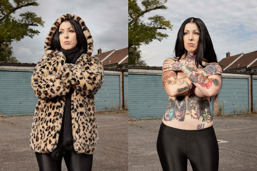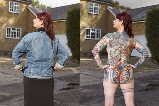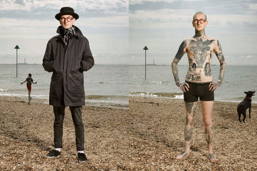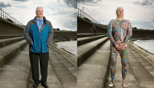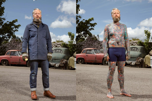 Vestiti, sono persone qualunque. Ma se da qualche parte, su un polso o sul collo, sbuca un arabesco colorato, è il segnale che qualcosa di strano c’è. Se si spogliano, come hanno accettato di fare in questi scatti del fotografo inglese Alan Powdrill, rivelano un mondo. L’intero corpo trasformato in un quadro, in una parete affrescata, in un disegno aggrovigliato, carico di simboli e di narratività, che comincia da una parte e non si bene dove finisca.