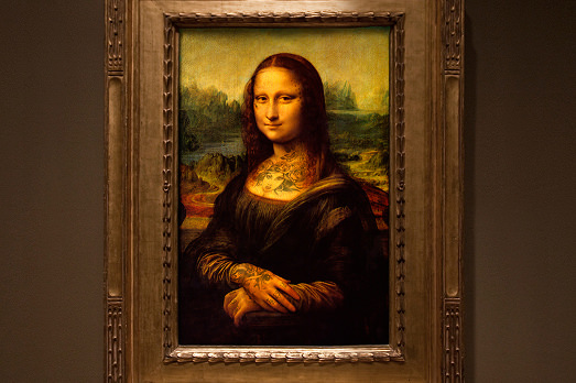 Altro che baffi alla Gioconda messi da Duchamp! Roba da scolaretti, qui si rilancia con nientepopodimeno che tanti, fantasiosi e invasivi tatuaggi.
