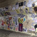 Che si vede? Dozzine e dozzine di stickers coloratissimi, a formare un murale, probabilmente messo in piedi la scorsa notte e chissà per quanto tempo ancora si avrà la fortuna di vederlo.