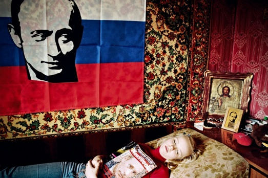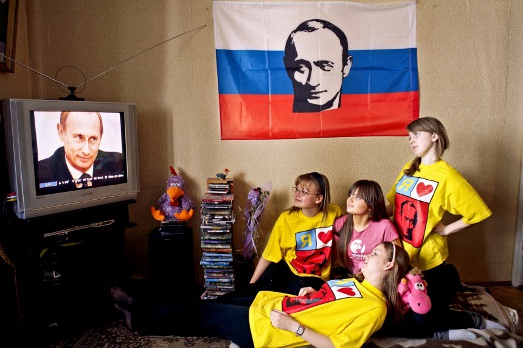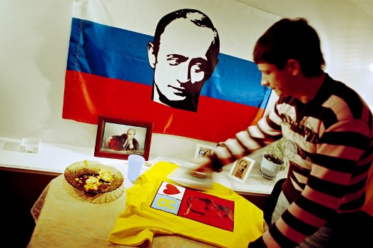 Ma non dovevano essere un po’ punk o post punk, tosti, insomma, molto gioventù bruciata sottozero? E invece eccoli qui, tutti in fila a farsi fotografare nella loro cameretta con un unico (pare) mito appeso al muro. Sì, proprio lui, Vladimir Putin. Quello che mezzo mondo (o forse anche di più) vorrebbe fuori dal Cremlino, cancellato dal novero dei potenti della Terra. Quello che in molti indicano come mandante degli inquietanti omicidi che si sono verificati in Russia negli ultimi anni. E proprio i ragazzi, che in genere sono ribelli almeno per dovere d’età, se lo mettono in camera neanche fosse una rockstar o Che Guevara. Portano magliette con la sua bella faccia stampata e se lo sorbiscono in tv in allegra compagnia. Yulya, la ragazzetta che vedete in foto, dice che “ha risuscitato la Russia”.
