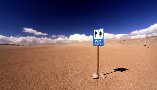 Imperdibile questa che vi proponiamo in homepage. I simboli sono equivocabili, poi la fondamentale scritta in spagnolo che segnala il bagno e tutto intorno il nulla. Ma guai a farla da un’altra parte! Toilet decisamente open air, questa all’estremo lembo del deserto di Atacama, in Bolivia, eppure segnalata.