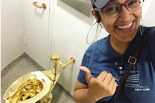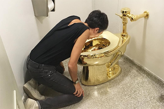 Le reazioni, il successo, l’ennesimo scandalo sono noti. I selfie un po’ meno. Ebbene sì, davanti America c’è la fila per autoimmortalarsi al cesso d’oro. Guardare per credere.