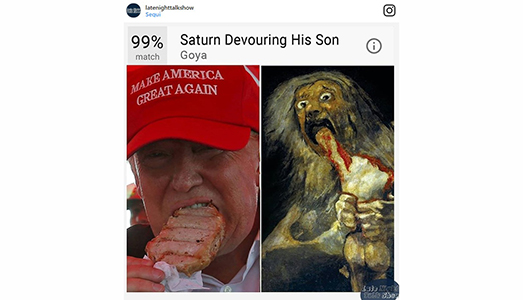 Avete mai pensato a Trump come al Saturno di Goya? Forse voi no, ma Google Arts & Culture sì. La piattaforma online del colosso di Mountain View, che dal 2011 raccoglie online immagini in alta definizione di opere d’arte esposte in vari musei in tutto il mondo, ha da poco lanciato un nuovo aggiornamento basato sul riconoscimento facciale, Match Me Up. Gli utenti, infatti, non devono fare altro che scattarsi un selfie tramite l’app che, con la scansione del viso, trova in pochissimo tempo l’opera d’arte che vi somiglia di più. Un diluvio di immagini taggate #GoogleArtsAndCulture ha già invaso i principali social network, diventando uno degli ultimi trend più popolari di internet. Disponibile per i sistemi operativi Android e iOS, l’app non è ancora disponibile in Italia, ma intanto, per riprendervi dal Blue Monday, potete dare un’occhiata alla nostra gallery: ovviamente, c’è chi non ha perso tempo, e come nel caso di Trump, ha uploadato fotografie di personaggi famosi o dei propri animali, ottenendo dei risultati esilaranti. (NG)