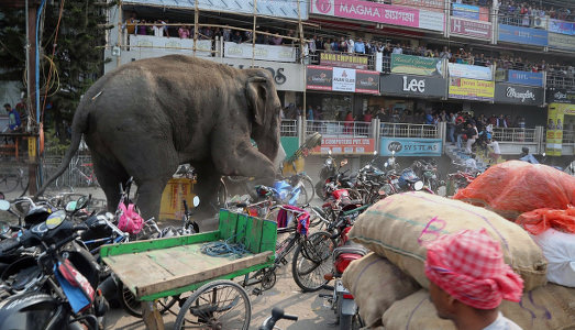 L’India è famosa per le mucche che pascolano placidamente nel traffico più bestiale delle città. Ma la passeggiata urbana di un elefante non si era mai vista. E in effetti non era neanche prevedibile. Il grande mammifero è capitato non si sa come nella città di Silguri (Bengala occidentale) proveniente dalla foresta Baikunthapur. E mentre stava iniziando la sua traversata di Siliguri, è stato raggiunto da una freccia tranquillizzante. Ma è andata male. A quel punto ha cominciato a caracollare tra macchine, risciò, bici e quant’altro incontravano le sue zampone. Tanto da far scappare tutti e da inscenare un imprevisto remake di King Kong e di altri film apocalittici.