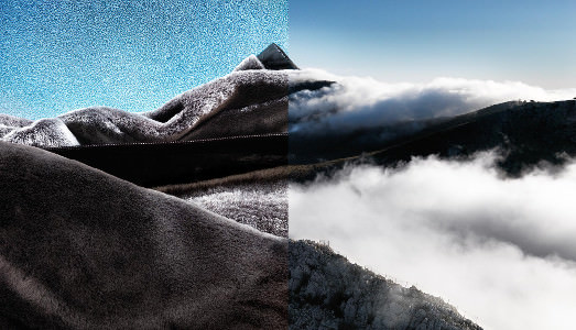 Dune ondeggianti del deserto, si raffrontano così con la morbidezza di un maglione di lana, mentre jeans lievemente strappati, si uniscono alla precarietà delle nuvole.