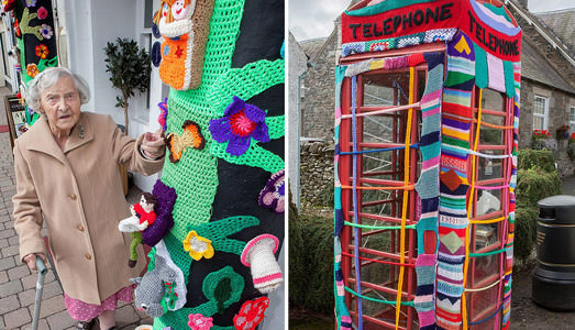 Grace Brett è un’arzilla signora di 104 anni considerata una delle “yarn bombers” (letteralmente bombardamento di filo) più abili d’Europa.