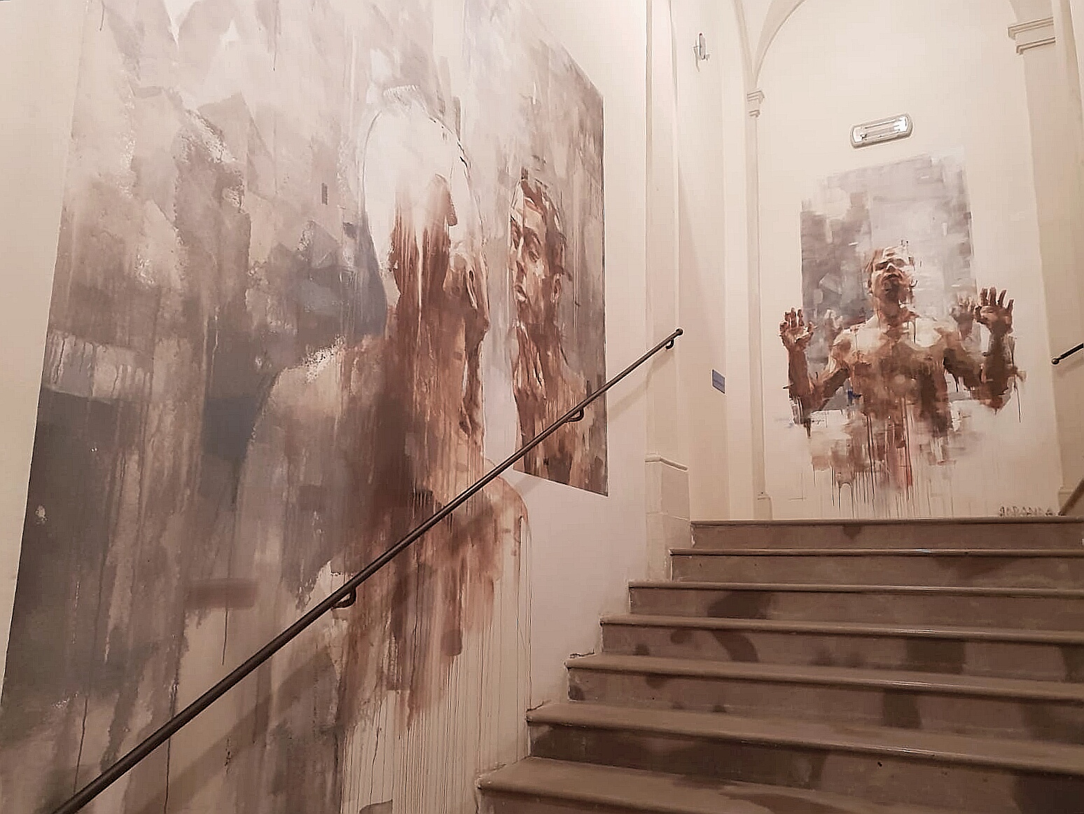 Sulla questione poi del valore degli interventi (su un articolo del Messaggero del 5 aprile l’ex direttore ha parlato di 500mila euro, che neanche Banksy arriva a tanto), mi chiedo: i coristi hanno visto in che condizioni versano oggi molti di quei murales che dovevano essere “temporanei” e “su supporti rimovibili”? Quelli in esterno si stanno ammuffendo per l’umidità, alcuni seppur al riparo hanno già perso parte della pellicola pittorica, altri si sono spaccati in seguito al terremoto del 2016 con cadute di colore. Se tanto è il loro valore, perché non essersi preoccupati di conservarli meglio, magari facendoli realizzare su pareti preparate adeguatamente o supporti rimovibili, appunto come era richiesto nei documenti ufficiali?