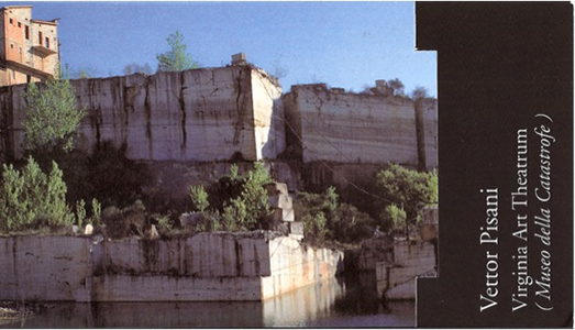 “È catastrofe quando l’immagine artistica, pur essendo spoglia, severa, minimale accoglie comunque i segnali dolorosi della storia, i miraggi del desiderio, gli elementi nebbiosi della memoria, il cenno fulminante della rivelazione e i temi si sdoppiano in parallelismi mentali e inversioni di senso. […] È catastrofe quando la coscienza del trauma costringe artista e fruitore al disorientamento percettivo. La muraglia delle certezze è crollata […] È catastrofe quando in un’opera le quote di eros e thanatos sono eccedenti”. Così scrive Mimma Pisani nel romanzo figurativo – come lo chiamava Vettor – dedicato al Virgina Art Theatrum e pubblicato nel 1998 per le edizioni Charta.