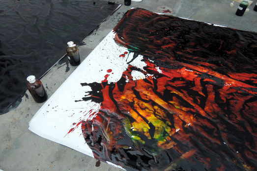 Scano Larràzabal costruisce delle ingegnose e leggerissime “macchine” che azionano pennarelli e matite. Sono questi, con un evidente apporto di casualità, a realizzare un’opera che poi lui a volte emulsiona con acqua e altre volte sottopone ad altri trattamenti. Per Di Fabio le “isole” colorate che realizza sono occasioni per entrare in contatto con una “terraferma”, dove sia questa che le prime possono esprimere la complessità di una persona e della cui interazione è l’artista per primo a stupirsi. Ma al centro del suo lavoro, come in quello di Scano Larràzabal, c’è un principio di fluidità, la presenza del caso che il controllo pittorico aveva emendato. Chiaro che il loro lavoro non esisterebbe se non ci fosse stata la Bad e la Expanded Painting o, semplicemente, il lavoro di alcuni artisti come Tillmans nella fotografia, ma ora qui si percepisce un passaggio ulteriore.