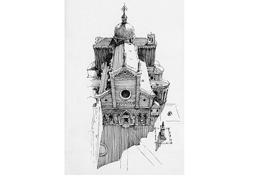 Moleskine e penna a china alla mano, le colonne di piazza San Pietro o la Cupola della Basilica di Santa Maria della Salute come modelle, un ultimo tocco di personale creatività ed ecco che gli sketches dell’australiano Mark Poulier diventano immagini virali della rete. Gli schizzi, come le acqueforti e le litografie, sono generi che spesso guardiamo con occhio critico, considerandoli solo bozze, tavole preparatorie per un’opera più grande e definita. Architetti, scultori e artisti spesso si affidano più alle possibilità dello schermo e dei programmi virtuali per dare vita alle loro opere. Anche Poulier ne fa buon uso, ma rimane fedele alla vecchia carta e al tratto sicuro e concreto della china. Una scelta che si rivela vincente: in poco tempo riesce a diffondere i suoi disegni attraverso social, come Instagram, raggiungendo più 73k follower. Pagine e pagine di schizzi documentati ogni giorno e apprezzati da un pubblico sempre più numeroso.