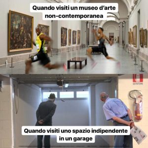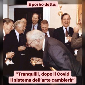 E.G.R.: Daccordissimo. I meme del suo Make Italian Art Great Again sono intelligenti ed esilaranti. Non avrei mai immaginato che un libro potesse esserlo altrettanto e tenerti inchiodato alla lettura. Però, ho interrotto un momento per fare un giro sul web e vedere cosa dicono di lui. Ho trovato, pensa, un’intervista di Federico Palumbo, La rivoluzione Non siamo Noi, per Osservatorio Futura, del1 settembre 2020. Alvigini qui scrive: “Il successo di un artista si misurerà nella capacità di movimentare attorno al suo percorso il maggior numero di (veri) addetti ai lavori” citando sé stesso dal capitolo Come ottenere un rapido e immeritato successo in arte. Ma la cosa bella è che al tempo di questa intervista, il libro non era ancora uscito e non si era neanche troppo sicuri che sarebbe avvenuto. Era annunciato da diversi anni; molti pensavano fosse uno scherzo. Anche questo senso di anticipazione e di attesa e tutto il modo di generare la comunicazione attorno al libro, dovremmo magari tenerne conto nella recensione, cosa ne dici?