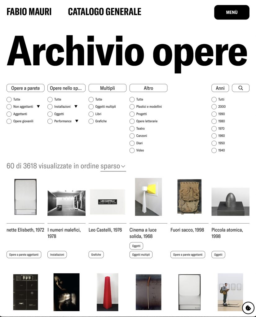Catalogo Generale online, a cura di Carolyn Christov-Bakargiev. Pagina del sito fabiomauri.com/it/catalogo/opere