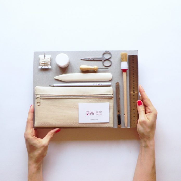 FoxCraft non è solo produzione ma anche corsi in cui imparare l’arte della rilegatura artigianale. Attualmente, a causa del Coronavirus, i workshop si sono tenuti online. Per realizzare da casa taccuini e quaderni è disponibile il kit di legatoria. Si tratta di un astuccio in cui ci sono tutti gli strumenti che servono per rilegare a mano la carta. All’interno si possono trovare le forbicine, filo, ago, ma anche un righello e un taglierino.