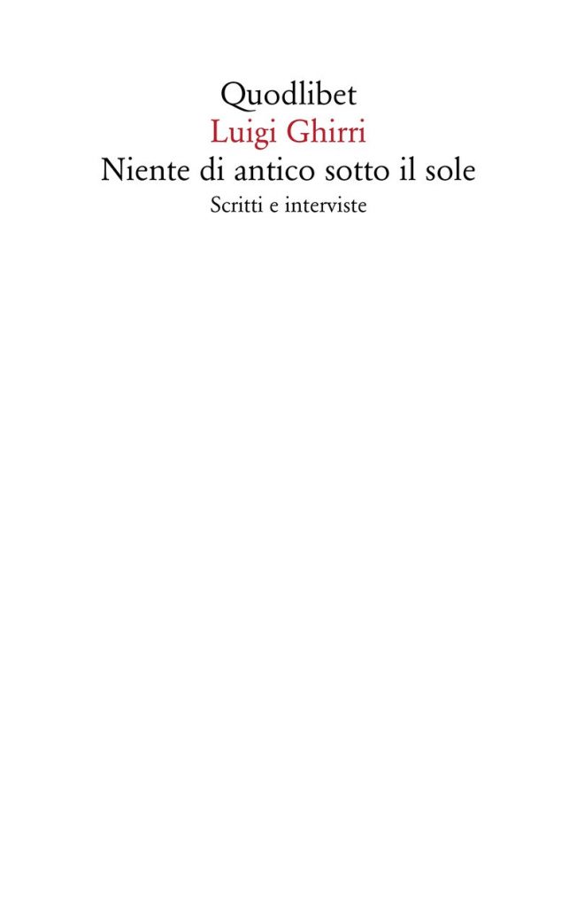 Luigi Ghirri muore nel 1992 a 49 anni, improvvisamente, nella sua casa di Roncocesi in provincia di Reggio Emilia, dopo 20 anni di lavoro con cui ha rivelato un modo diverso di guardare il mondo. Di Luigi Ghirri, dopo “Lezioni di fotografia” del 2010, Quodlibet ci presenta “Niente di antico sotto il sole”, pubblicato per la prima volta nel 1997 dalla Società Internazionale di Torino con il sottotitolo “scritti e immagini per un’autobiografia”, visto lo stretto e persino ovvio intreccio nel volume di scrittura e fotografia.