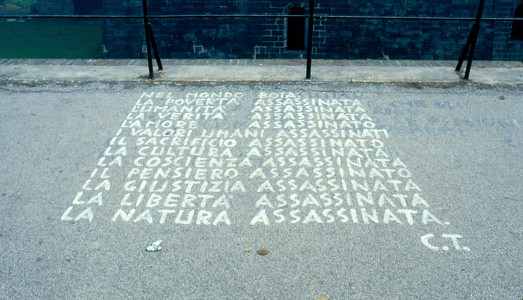 In Italia, negli anni Settanta, i centri urbani furono motivo d’interessi di numerosi gruppi di artisti e di singoli “operatori sociali” (come li definiva Enrico Crispolti) i quali portarono a maturazione, con interventi e performance urbane, il tema del rapporto che intercorre tra l’individuo e il tessuto metropolitano e le sue periferie, mettendo in evidenza le contraddizioni urbanistiche e politiche, contrapponendo ad esse interessanti proposte artistiche. La creatività di questi gruppi, messa al servizio di uno spirito critico e di una volontà propositiva, tendeva in prima istanza alla chiarificazione del senso della dimensione sociale. Le radici di queste volontà performative filtravano, in parte, ancora gli umori del precedente decennio, in particolare risentivano dell’onda lunga del clima culturale ed artistico situazionista di Debord e compagni.