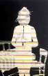 Una pittura che mette in scena il non-sense della vita quotidiana prendendolo a pretesto per una discussione più ampia. Ecco che in PS-winken una donna nuda con un logo pubblicitario dipinto sul petto, una chiara denuncia della mercificazione del corpo, diventa anche oggetto di una mediazione astratta: una serie di bande scure la tagliano orizzontalmente a ritmo cadenzato, costringendo il nostro cervello a ricostruire l’immagine per averne una fruizione completa. Allo stesso modo sul ritratto banale di una ragazza che ci osserva da dietro la rete di una racchetta da tennis (Verstellter Blick), l’artista riproduce lo stesso reticolato per rendere l’idea del punto di vista del soggetto ritratto.