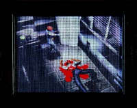 Marina Bollini (Vasto, 1970) riporta nei suoi lavori a mezzopunto gli elementi che hanno caratterizzato un’intera generazione di giovani: un background culturale fatto di televisione e sale giochi. Il lavoro dell’artista abruzzese consiste quindi nell’estrapolare da famosissimi videogame immagini di particolare violenza, riproponendole attraverso una tecnica antica ma soprattutto insolita nell’arte