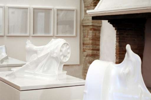 L’idea di bloccare un oggetto era già stata sperimentata attraverso il sottovuoto. Ma il “rumore retinico”, come lo definisce Sabatini Odoardi, qui viene messo definitivamente a tacere con i pannelli bianchi opachi in polistirene, un materiale plastico altamente plasmabile quando è sufficientemente caldo. Pannelli che, attraverso la termoformatura, definitivamente “congelano” o “ibernano”, come dice l’artista stesso, un gran numero di oggetti comuni, diventando un unicum, di cui si può anche scegliere di apprezzare il puro valore estetico. Oggetti che non vengono cercati, ma, come insegna Picasso, trovati. Soli o in coppia, disposti l’uno di seguito all’altro, compongono come parole il racconto dell’artista. Un racconto interrotto da pause irregolari, che costringono a tenere vigile l’attenzione e a ri-elaborare di continuo l’iniziale chiave d’accesso, a metterla in discussione, a trovarne delle nuove.