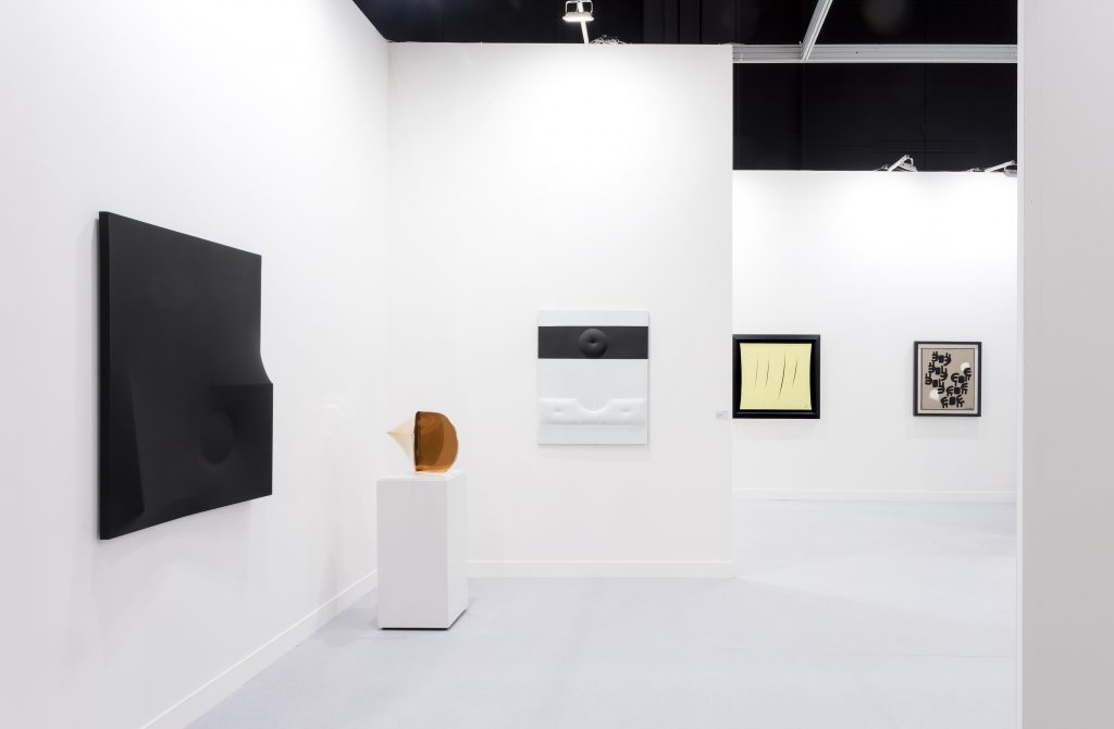 «miart si conferma una fiera d’arte di qualità, sia per gli espositori che per i visitatori-collezionisti», rivela a exibart Antonio Addamiano dalla Dep Art Gallery, stand A121. «Dopo i primi giorni di ottimi contatti, si sono chiuse alcune importanti vendite». C’è un grande Gerold Miller da € 40.000 tra gli highlights della selezione, dialoga tra gli altri con le superfici colorate di Regine Schumann, che «conferma l’elevato interesse che abbiamo anche verso la sua mostra galleria», spiega Addamiano, in riferimento all’esposizione in corso nella sede di via Comelico, a Milano. «Uncini invece sorprende sempre per il quantitativo di clienti affezionati che conoscono approfonditamente il lavoro». Bella la selezione di Mucciaccia Gallery, interamente dedicata a Pietro Consagra: a partire da Città Frontale, 80 edifici generici del 1968 («La frontalità», diceva l’artista, «contiene inserita la Città come argomento delle emozioni umane»). Asking price: € 200.000. In ottima compagnia, tra gli altri, con un esemplare in onice del Pakistan (1991), con due grandi Racconti del demonio (1962), un dipinto su fondo grigio-lilla striato (1974), c’è perfino un lenzuolo rosa dipinto a pennello (1974). La ricerca di Consagra – tra i primi italiani contemporanei a entrare nelle collezioni dell’Art Institute of Chicago e il primo contemporaneo (allora) vivente a esporre all’Hermitage di San Pietroburgo – tutta racchiusa nel booth E115.