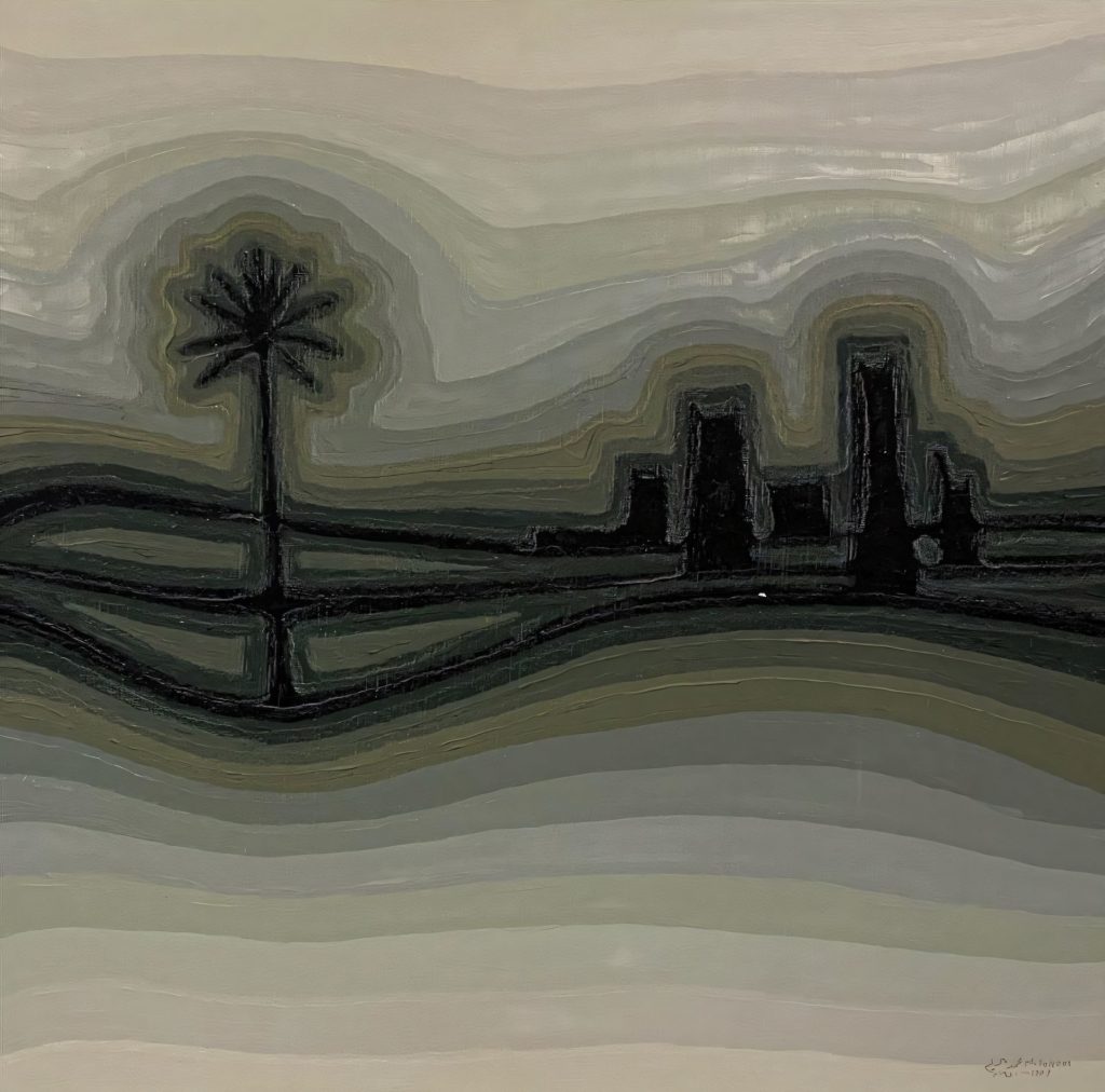 La mostra riunisce opere seminali del modernismo saudita insieme a importanti materiali documentari e d’archivio. Tra i pezzi forti, un dipinto di Mohammed Al Saleem degli anni ’80 raffigurante un orizzonte, ispirato alla sua astrazione dello skyline di Riyadh visto dal deserto. In mostra anche una delle opere più intime di Abdulrahman Al Soliman, un dipinto del 1981 che rappresenta l’oasi di Al-Ahsa, creata con il terreno del deserto raccolto durante le visite d’infanzia.