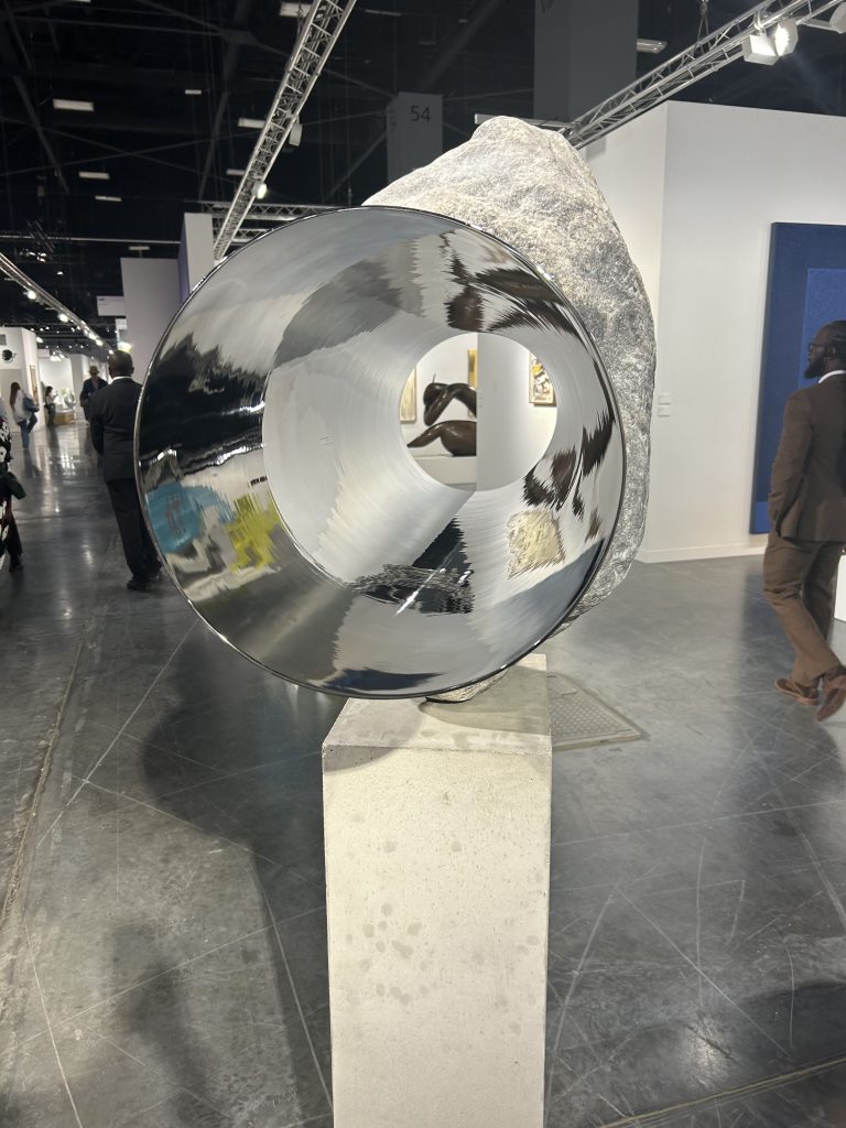 Per arrivare all’ultimo settore, Meridians, si deve attraversare tutto il Convention Center. Volutamente lo lasciamo alla fine perché dal labirinto degli stand, dal dedalo di proposte una accanto all’altra, con questo spazio inaspettato si conclude con un respiro e un’immersione profonda nell’arte non solo commerciale. Il settore Meridians nasce da un’idea innovativa di esposizione fieristica nel 2019. Doveva essere un grande spazio, che potesse contenere installazioni, sculture ambiziose e opere museali, opere dunque non facilmente esponibili, spazio che potesse ospitare la grandezza. Quest’anno la sezione è diretta dalla curatrice messicana Magalì Arriola.