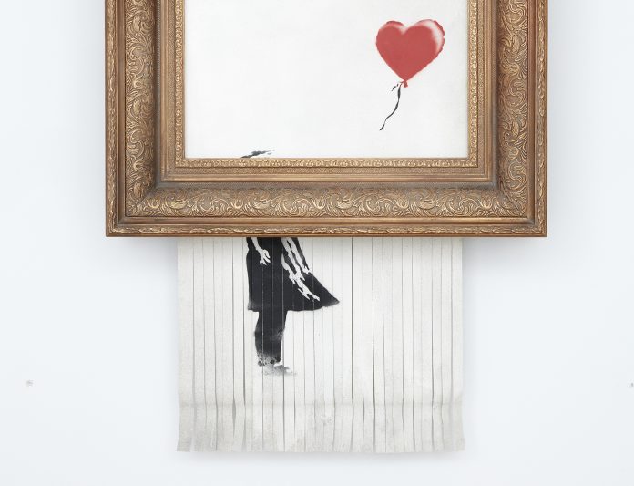 Era il 5 ottobre 2018. L’auctioneer di Sotheby’s Londra aveva appena assegnato Girl with Balloon di Banksy per £1 milione – un nuovo record, allora, per l’artista di Bristol – quando l’opera, ancora appesa alle pareti della casa d’aste in New Bond Street, si disintegrò. Solo a metà, a dirla tutta, perché qualcosa andò storto nell’ingranaggio inserito in gran segreto da Banksy. Ma poco importa: quella sera i presenti assistettero a un’indimenticabile performance, alla creazione di un’opera a sé stante che di lì a poco, con una nuova data e un’autentica della Pest Control, avrebbe perfino cambiato nome. A tre anni di distanza da quell’evento sensazionale, Love is in the Bin torna all’asta da Sotheby’s, nella stessa sala che le ha dato la vita. La stima? Stavolta, una cifra compresa tra i £4 e i £6 milioni. Vale a dire fino a 6 volte il suo prezzo originale.