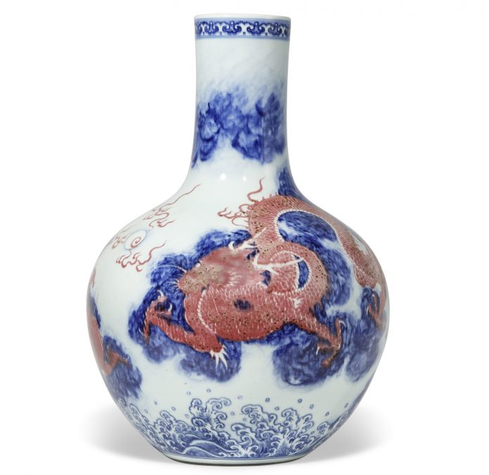 Apre con il botto la Asia Week New York di Bonhams. L’asta dedicata alle ceramiche e alle opere d’arte cinesi ha visto schizzare un vaso – il top lot della selezione – dalla stima di $ 400.000-800.000 fino al prezzo finale di $ 3,7 milioni. La particolarità? Risale al periodo Qianlong (1736-1795), esemplifica il movimento antiquario della prima dinastia Qing e rende omaggio allo stile delle porcellane imperiali della dinastia Ming del XV secolo. Il suo motivo pittorico drago e nuvola, in particolare, è ispirato ai dipinti a inchiostro della dinastia Song nella collezione della corte Qing. «Un vero capolavoro», dicono gli esperti, «l’unica opera paragonabile conosciuta si trova nel Museo del Palazzo di Pechino».