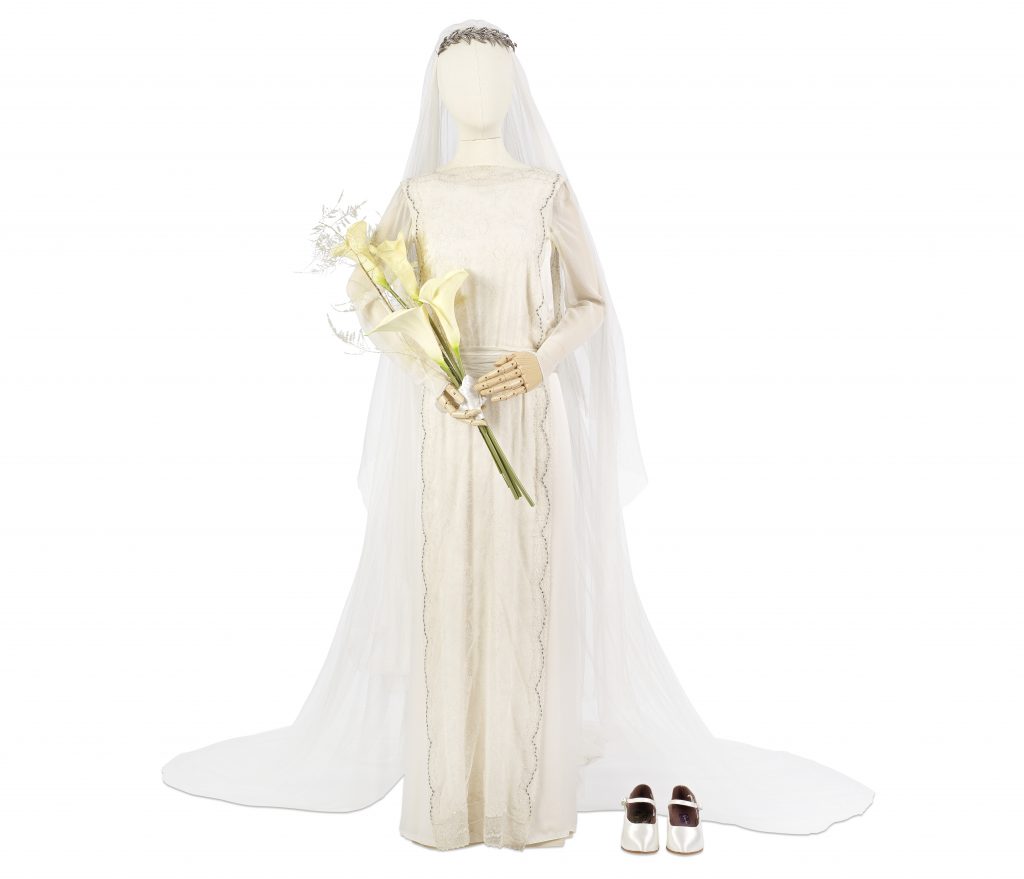 Quindi, ecco i pezzi forti della vendita: il costume di scena per il matrimonio e il bouquet da sposa indossato da Michelle Dockery (nel ruolo di Lady Mary), stagione 3, episodio 1. Stima: £3000 – 5000. L’abito rosa chiaro e abito da giorno grigio scuro indossato da Maggie Smith (nel ruolo di Violet Crawley), stagione 6, episodio 1: stima £ 1500 – 2000. Ma anche un ciak utilizzato nella produzione del film Downton Abbey: Una nuova era, che oggi potrebbe raggiungere £ 1500. Mentre una sceneggiatura autografata di Downton Abbey, il primo episodio della prima stagione, è stimata £ 600 – 800.