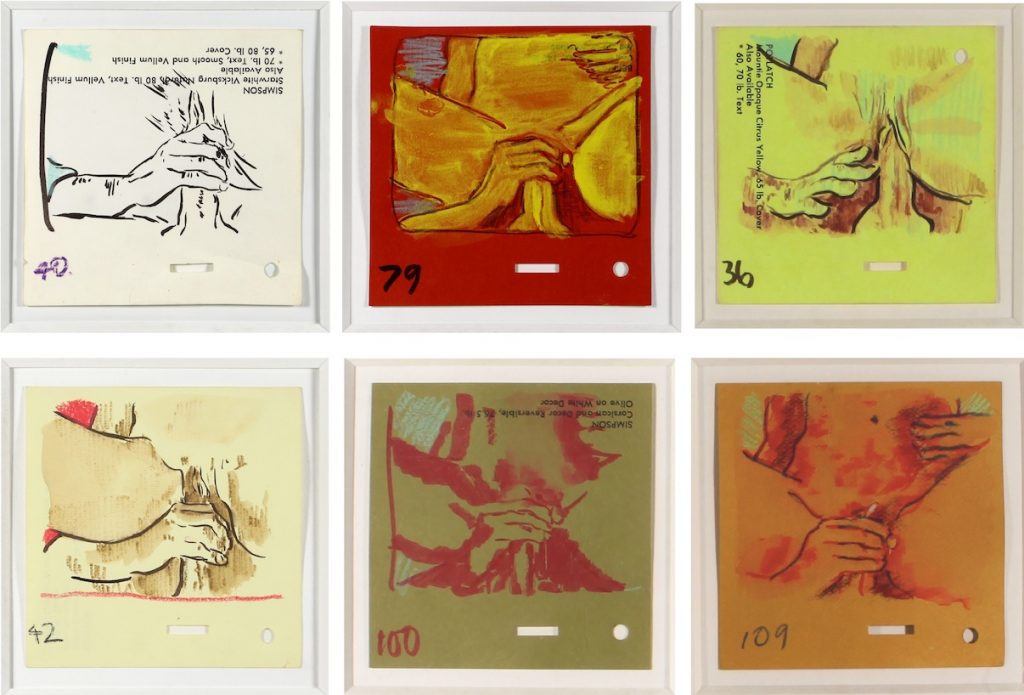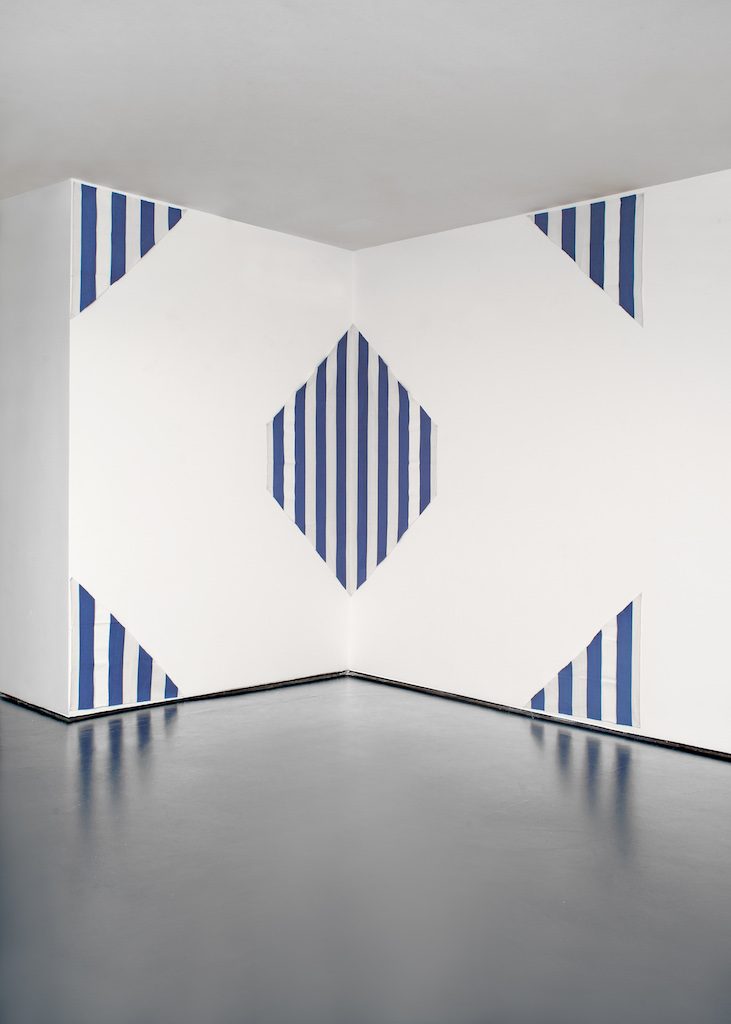 Primo nome di spicco, senz’altro Daniel Buren; il suo riconoscibilissimo Riflesso: une peinture en cinq parties pour deux murs, travail situé (stima: su richiesta), a bande verticali bianche e blu, è formato da 5 tele da installare a parete a partire dall’angolo – elemento centrale del lavoro. «L’opera è fatta», scriveva Buren, «ma ora è necessario che tu voglia vederla». E che prima la “componga” in funzione dello spazio, aggiungeremmo in questo caso.