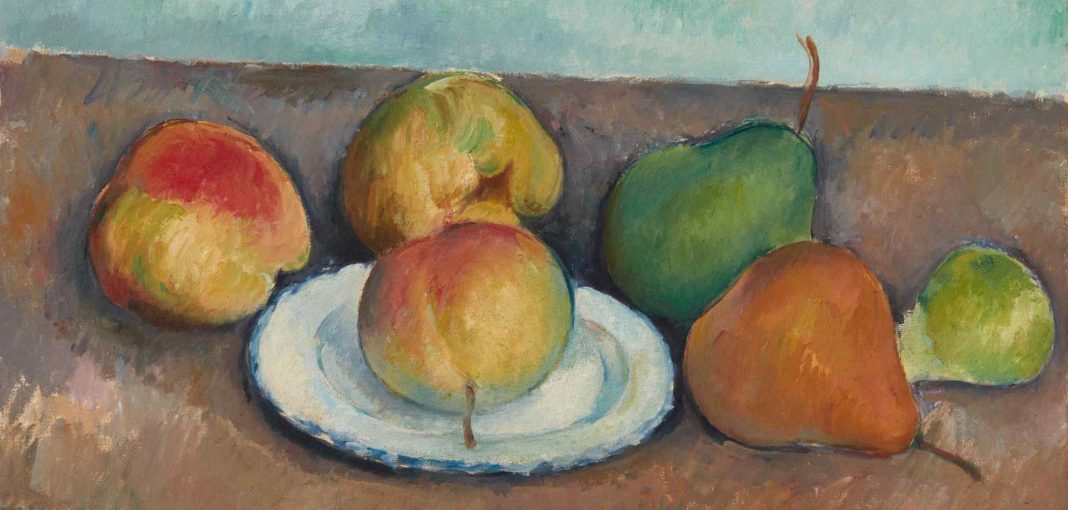 Nature morte: pommes et poires, è questo il soggetto del dipinto. I frutti, abbandonati sul tavolo, sembrano sovrapporsi, richiamarsi l’un l’altro, e danno vita a un dialogo silenzioso, armonico, animato da pennellate sempre vive. O da «distinzione e forza», per dirla come il pittore.
