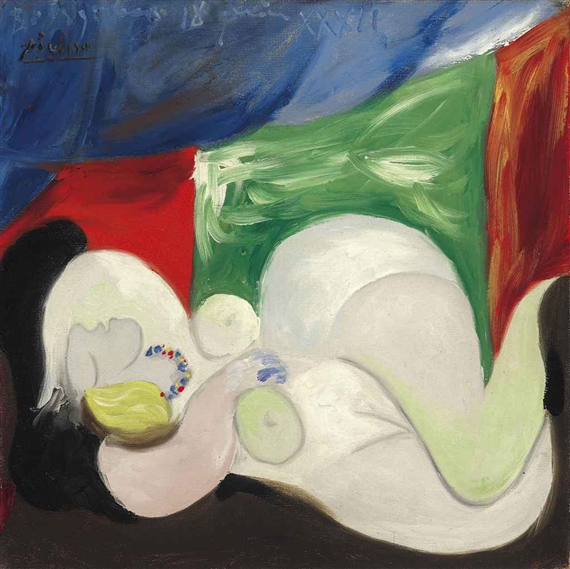 Il 1932, spiegano gli esperti di Christie’s, fu un anno cruciale per il successo di Picasso, con «una serie straordinariamente audace ed euforica di raffigurazioni eroticamente cariche della sua nuova musa». O anche «estaticamente erotiche», per rubare le parole del biografo John Richardson. Marie-Thérèse è ritratta distesa, addormentata, si staglia su uno sfondo colorato e quasi barocco, come in quei dipinti che la vedono protagonista al Centre Pompidou, al Musée Picasso, al Metropolitan Museum. «Quando Marie-Thérèse dorme», scriveva Pascale Picard, «il Minotauro domina anche i suoi sogni».