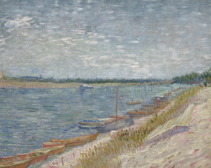 Ed eccolo il nuovo candidato alla corsa milionaria. Les canots amarrés fa parte di una sorta di trittico, ha lo stesso formato orizzontale e le dimensioni di Ponts sur la Seine à Asnières (Emil Bührle Collection, Kunsthaus Zurich) e Restaurant de la Sirène, Asnières (The Ashmolean Museum, Oxford). A proposito di qualità museale. Van Gogh lo dipinse nell’estate 1887 ad Asnières, un sobborgo alla moda situato sulla Senna a nord-ovest della capitale, lontano dal frastuono, dal logorio, dal caldo soffocante della ville. «Fu qui», spiegano da Christie’s, «che la ricchezza di lezioni stilistiche che Van Gogh aveva assorbito durante il suo soggiorno in città entrò in gioco e forgiò il suo stile pittorico distintivo».