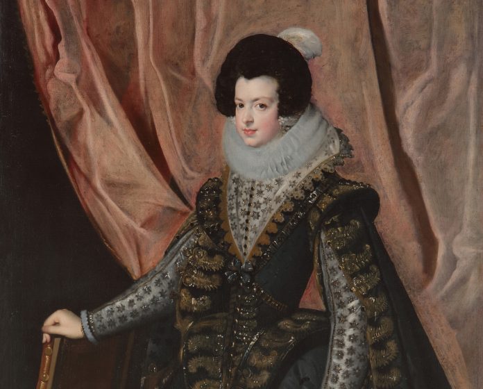 Qualche dettaglio sul dipinto, ovviamente scomparso, nel frattempo, dal catalogo ufficiale. La Reina a figura intera era già apparsa sul mercato oltre 70 anni fa, nel lontano 1950, dopo essere appartenuta alla famiglia del banchiere e collezionista Henry Huth. Prima di allora, la tela era esposta tra i tesori della collezione reale spagnola, in coppia con il ritratto di Filippo IV di Velázquez (ora al Museo del Prado), finchè non fu sottratta durante l’invasione napoleonica del 1808. Riapparse in Francia solo nel 1838, quando venne inclusa nella collezione del Musée du Louvre di Parigi.