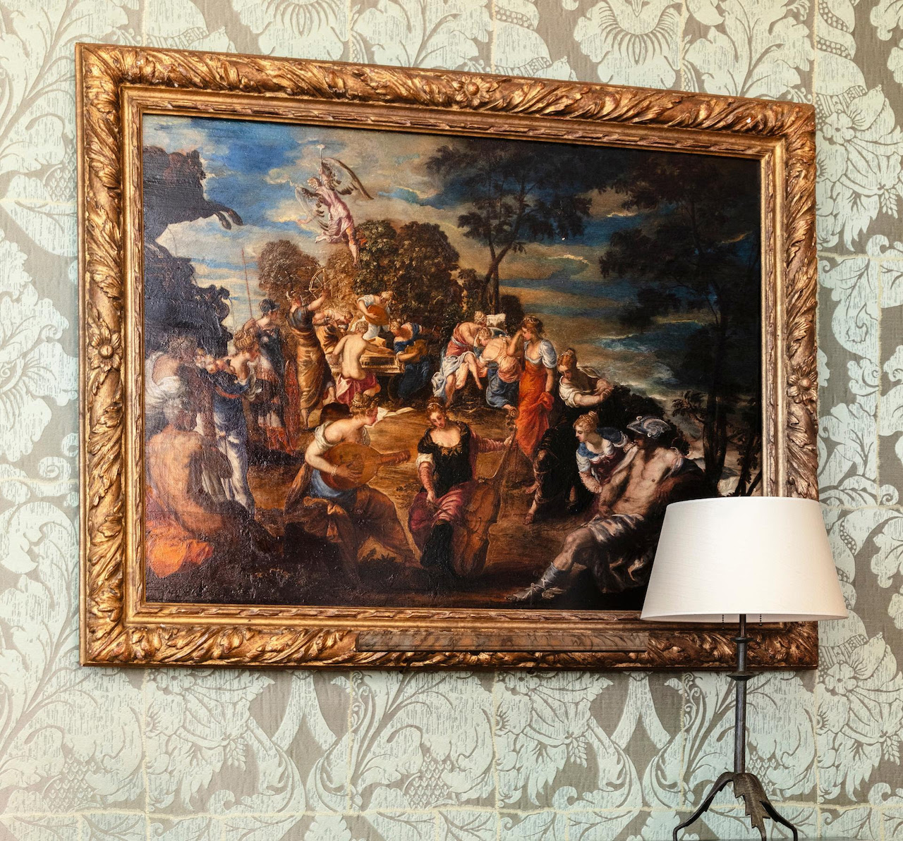 JACOPO TINTORETTO, Concert des Muses. Oil on canvas. Est: €300,000 – 500,000. ALBERTO GIACOMETTI, Lamp Trépied à Feuilles, first version, the model created around 1937. Est. €120,000 – 180,000. © Damien Perronnet Born & Art Digital Studio © Sotheby's
