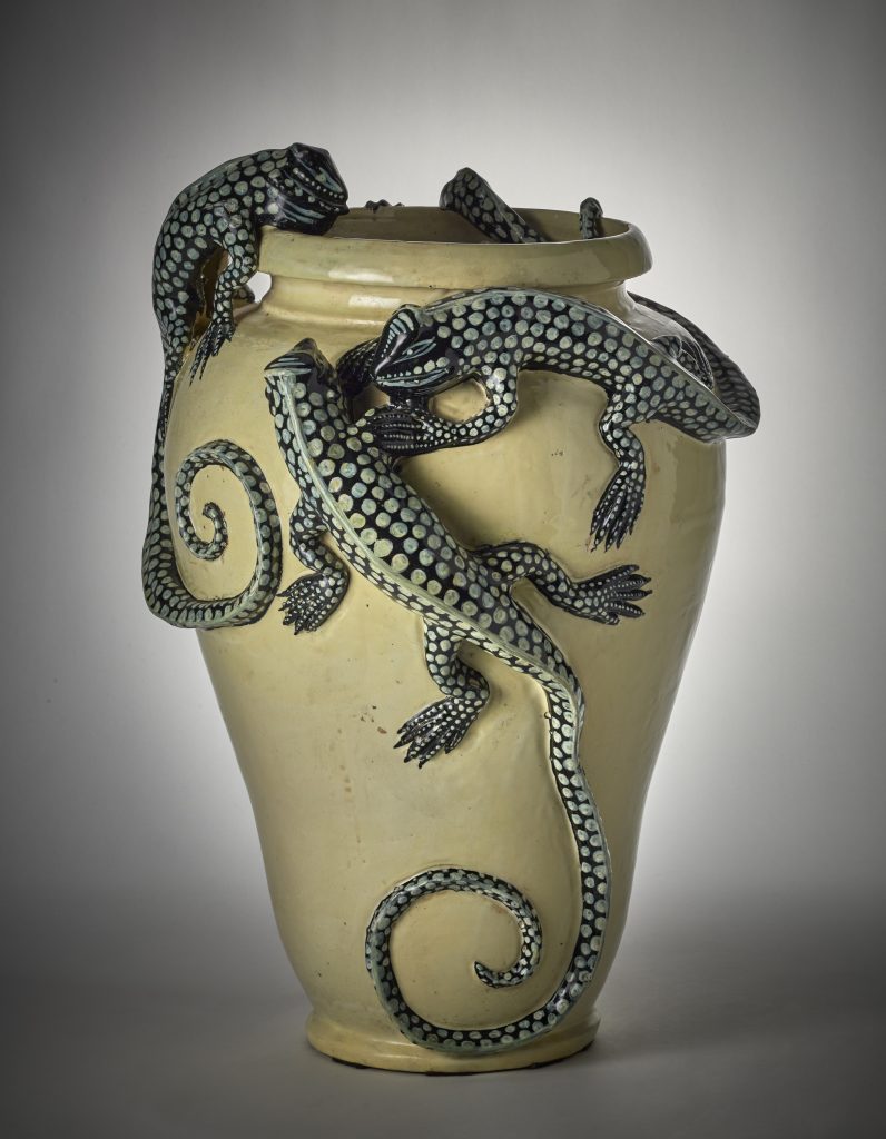 Concludiamo la nostra rapida ricognizione con un excursus tra le arti decorative, a partire da un raro vaso di Franco Poli, modello 3908, che vinse il Grand Prix all’Esposizione Internazionale di Parigi nel 1937 (stima: 2.000 – 3.000 euro). Una maestosa Upupa (stima: 9.000 – 10.000 euro) e altri animali realizzati da Toni Zuccheri per Venini celebrano l’arte vetraria di Murano, mentre il vaso “delle lucertole” o “delle salamandre”, ideato attorno al 1915 da Francesco Molaroni, accende l’interesse dei collezionisti più affezionati alla ceramica italiana (stima: 5.500 – 6.500 euro).