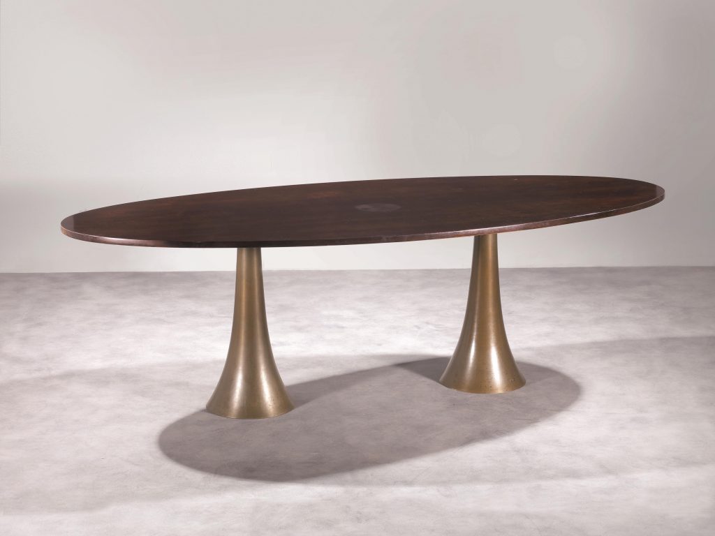 Iniziamo la nostra rassegna con un vaso in ceramica smaltata di Ettore Sottsass, uno dei primi che – spiegano dalla casa d’aste – il designer realizzò nel 1957 assieme ad Aldo Londi (18.750 euro). E non sono da meno diversi esemplari di tavoli, a partire da quello progettato da Angelo Mangiarotti nel 1960, con piano ovale in legno e gambe a cono svasate in rame (15.000 euro), fino al lotto 123, disegnato da Leonardo Savioli per un appartamento dell’iconica casa di via Piagentina a Firenze (16.250 euro).