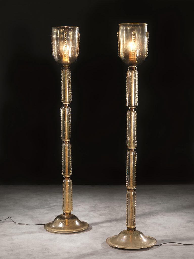 «Bene i grandi gruppi di sedie e bene anche gli imbottiti degli anni ’60 e ’70», rivelano dalla maison, ed evidenziano la coppia di poltrone in stile Art Nouveau di Eugenio Quarti – che ha trovato un nuovo acquirente per 6.250 euro. A scandire l’asta di Pandolfini, poi, diversi modelli destinati all’illuminazione, come il lampadario con struttura in metallo e pendenti in vetro realizzato intorno al 1950 dal maestro vetraio Vinicio Vianello (8.750 euro); e non deludono le aspettative le lampade da terra, come quella Archimede Seguso, in ottone e vetro acidato (5.625 euro), e di Barovier & Toso, in ottone e vetro iridescente nei toni dell’ambra (5.000 euro).