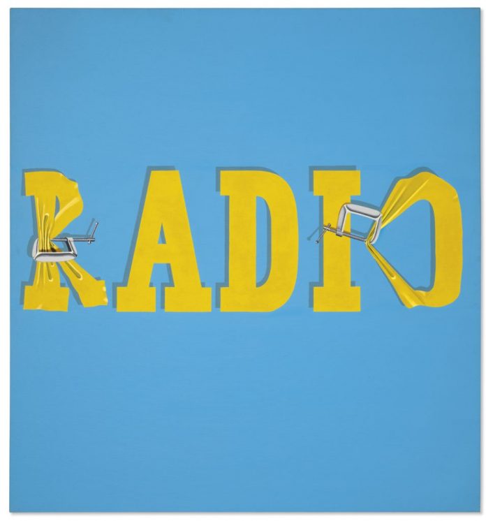 L’opera in questione è il capolavoro di Ed Ruscha dal titolo Hurting the Word Radio # 2 (1964), venduto durante l’asta di ieri sera per la cifra record di 52,5 milioni di dollari.
