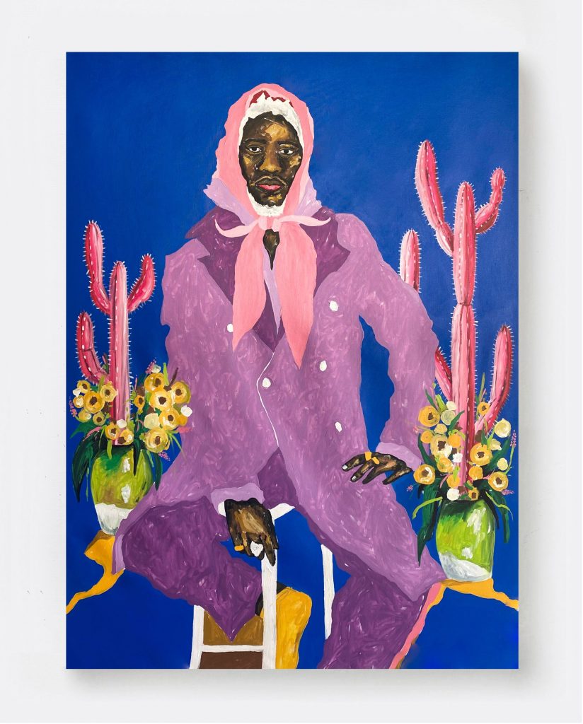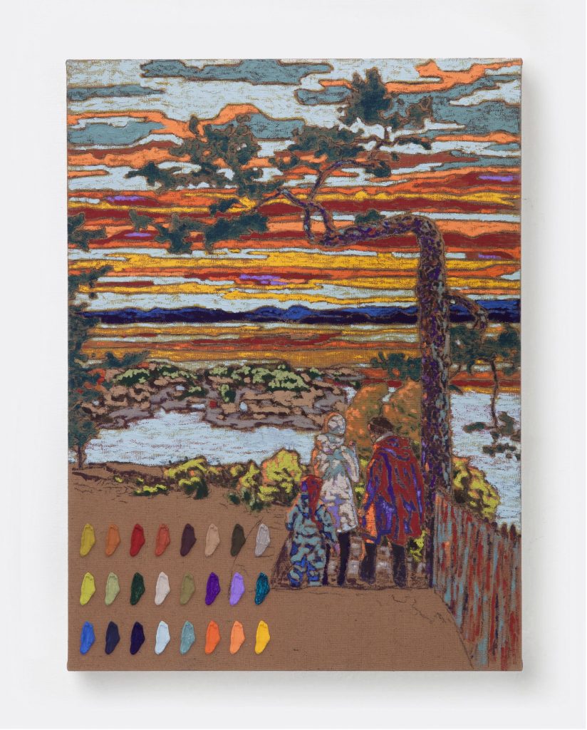 Un ultimo sguardo a uno degli 81 stand della fiera, quello della Monique Meloche Gallery di Chicago, che porta in scena un nutrito numero di artisti e crea un racconto incredibilmente eterogeneo, spaziando senza indugio tra stili, materiali e soggetti differenti. Ci sono Kajahl con Ocean Guardian (2021), tra gli altri, David Shrobe con Surveyors of Stars (2021), Dan Gunn con Mount Pleasant, Tall Sherbet (green), 2020, e ancora Cheryl Pope con Mother and Child on Blue Mat (2021) o la bellissima trapunta Tumbler di Sanford Biggers (2021).
