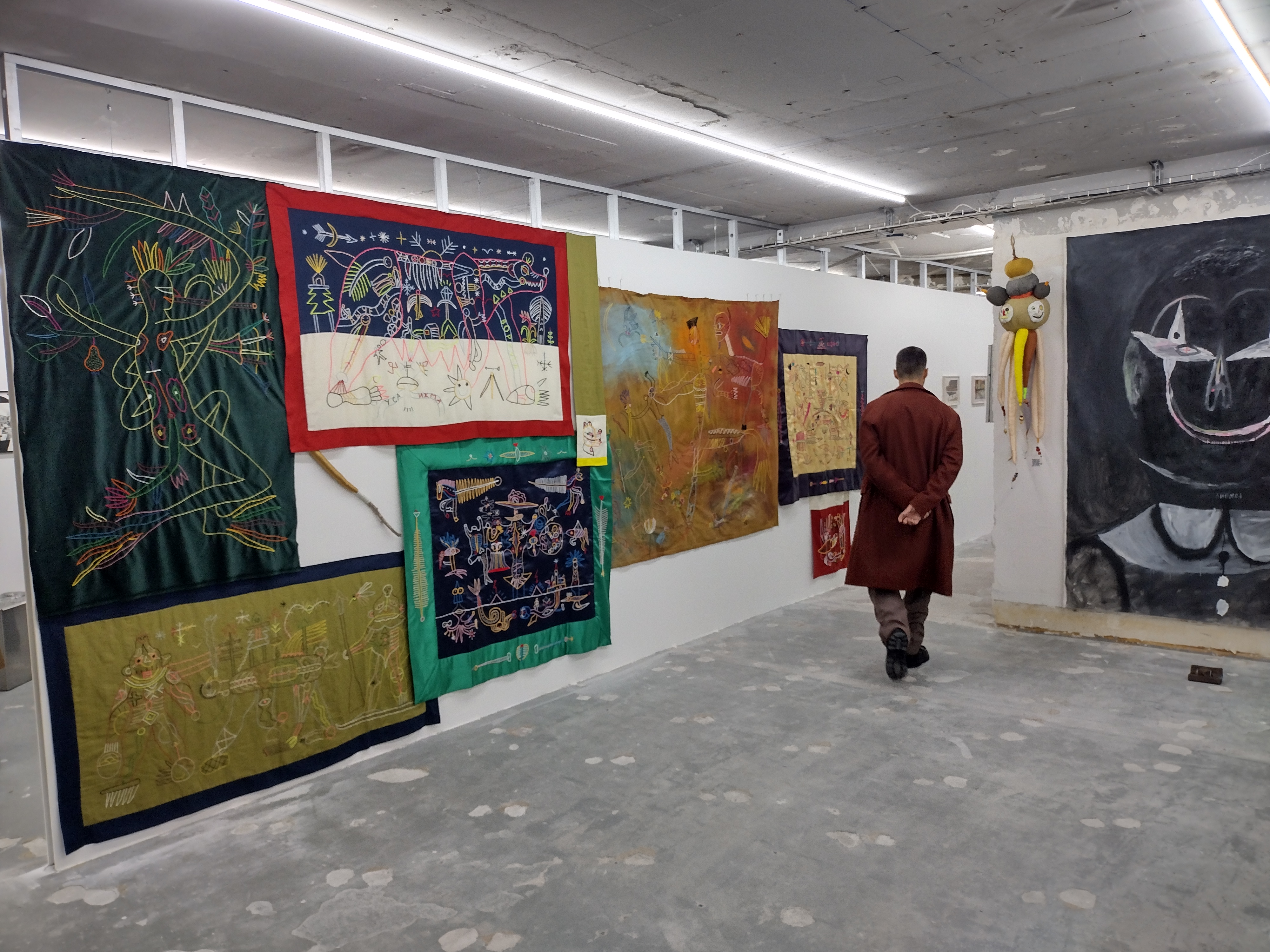 Also Known As Africa (AKAA) apre con 38 gallerie internazionali al Carreau du Temple, nel cuore di Parigi. Una fiera che merita una visita, per l’atmosfera amichevole e informale che si respira, e perché rappresenta un focus autentico sulla creazione artistica africana. L’ingresso è arricchito dall’installazione monumentale con diverse bellissime e coloratissime sculture tessili di Abdoulaye Konaté. Presentato dalla Galerie 38 di Casablanca, l’artista maliano inscrive nelle sue creazioni i segni e i simboli tradizionali provenienti da paesi del mondo, combina i colori associando modernismo occidentale e simbolismo africano. Ma Konaté è anche un artista impegnato che guarda alla condizione umana per restituire una visione critica sulle problematiche socio-politiche odierne.