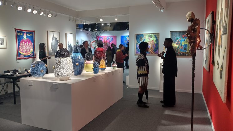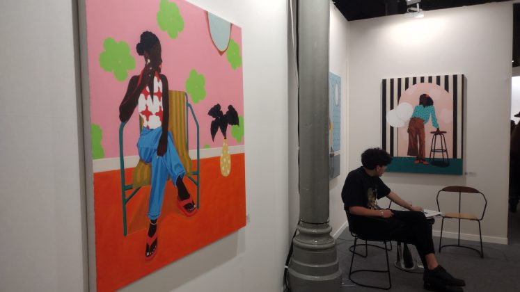Tantissime altre belle creazioni, come quelle di Esther Mahlangu, un’artista sudafricana, i cui acrilici guardano alla tradizione della pittura murale Ndebele; l’artista e attivista nigeriano Bob-Nosa Uwagboe; Amado Alfadni della Karim Francis Contemporary Art Gallery, qui con il progetto Miss Khartoum per un viaggio nel postcolonialismo. Willow Evann, presentato dalla 31 Projet, artista multidisciplinare, presenta un riferimento al movimento Locking, danza nata negli anni ’70 sulla costa occidentale degli Stati Uniti. Il suo lavoro guarda alle origini e all’identità, alla storia coloniale africana e francese come alla costruzione dell’immagine e allo status sociale dei neri. Infine, Adjaratou Ouedraogo in un solo show presso la parigina Françoise Livinec, copre lo spazio con bellissimi, grandi e piccoli, acrilici colorati e pieni di un’umanità tutta da scoprire.