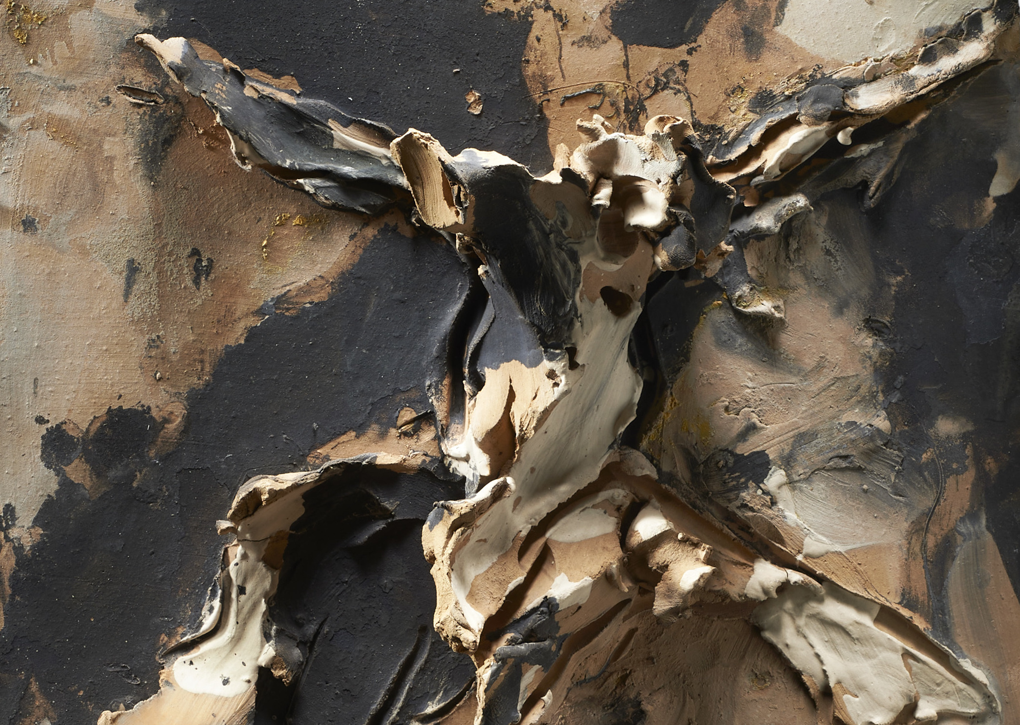 “Crocifissione” 1954, terracotta dipinta, cm 40,5×31,5×7,5