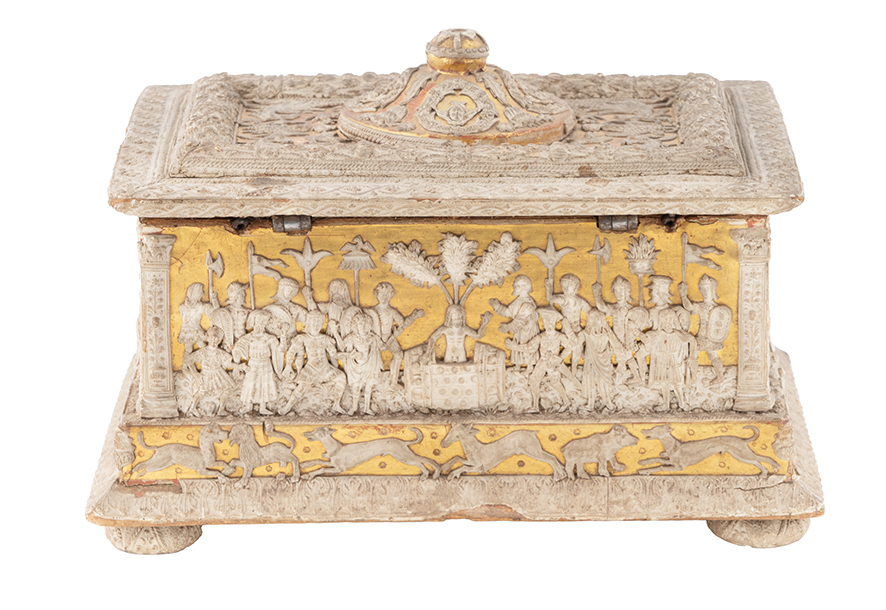 L’asta capita nel mezzo delle celebrazioni per i 150 anni della Libreria Antiquaria e Casa d’Aste Gonnelli, fondata nel 1875. Il catalogo è scandito da diversi nuclei tematici: troviamo una prima sezione dedicata a oggetti d’arte sacra e decorativa — come la Madonna col Bambino che legge in stucco modellato e dipinto (lotto 2, base d’asta €1.800) o il Cofanetto in legno e foglia oro del XVI secolo, decorato a pastiglia (lotto 3, base d’asta € 2.400). Seguono una selezione di cornici antiche (lotti 9-13), candelabri in bronzo dorato (lotto 18), cornici Luigi XVI (lotto 19). Tra i lotti provenienti dall’Oriente spicca un pregiato Paravento Coromandel di epoca Qianlong (lotto 25, base d’asta € 4.800), un Gruppo in giadeite con fenici (lotto 30, base d’asta € 340) e un Arazzo in seta (lotto 31, base d’asta € 480).